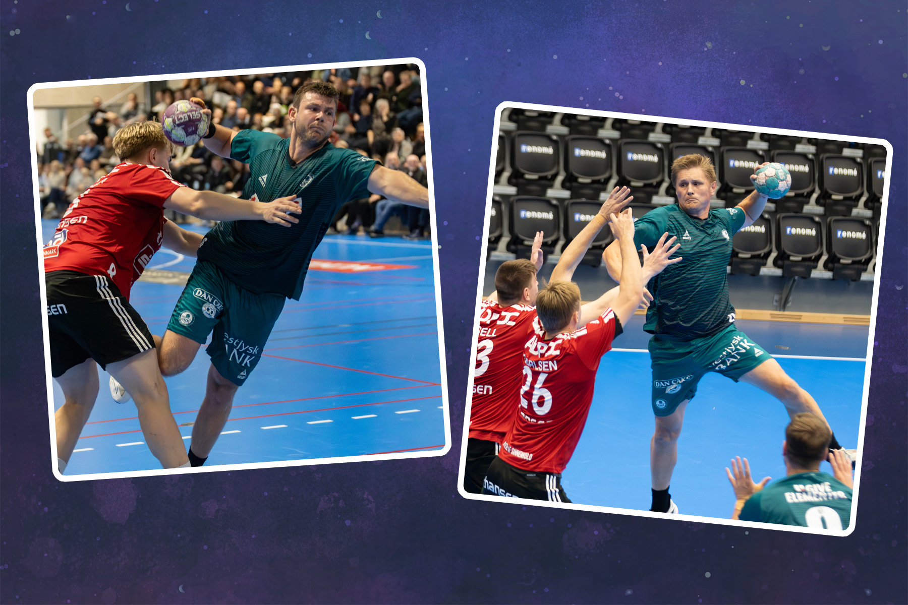 Simon Madsen og Simon Søgård. Madsen har været i Give siden januar 2017 og har på forbilledlig vis kæmpet sig tilbage på håndboldbanen efter at have fået fjernet en kræftknude i brystet i efteråret 2023.