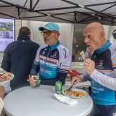 Den helstegte pattegris gjorde traditionen tro lykke, og stemningen var på trods af det noget uheldige vejr rigtig god, for vanen tro blev der snakket både cykelsport, tidligere meritter i bjergene i Frankrig og masser af god ’lokalpolitik’, hvor der blev sat skik på en del af de lokale udfordringer lige fra spøgelseshuset, undskyld sygehuset, til den forestående renovering af bymidten.