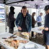 Foto: Da det regnede en hel del på selve dagen for cykelklubbens sommerafslutning, kunne man også trække indenfor hos Lars Secher i danbolig og nyde den helstegte pattegris med dertil hørende læskedrik. Foto: Jim Hoff