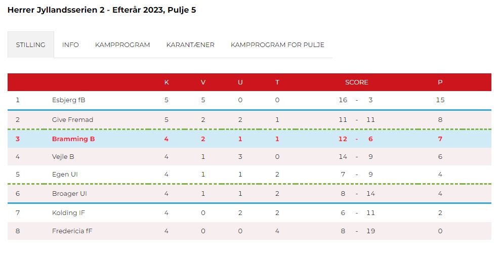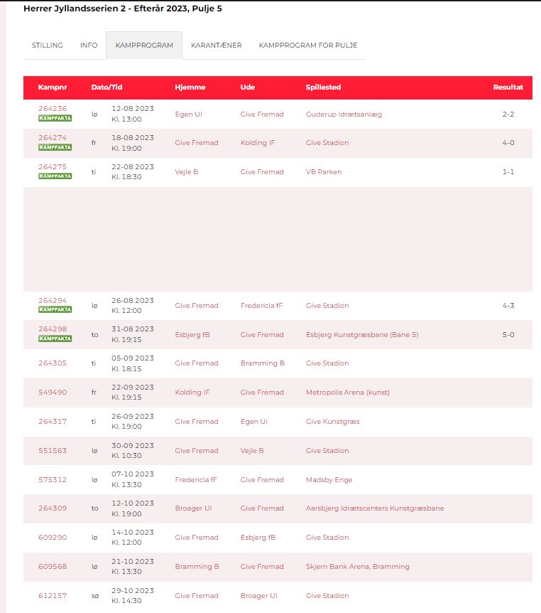 Give spiller næste kamp tirsdag den 5. september klokken 18.15 på hjemmebane mod Bramming. Et hold der kan have overhalet Give i tabellen, hvis de vinder lørdag hjemme mod Broager. Et kompetent mandskab, der ”kun” tabte 1-0 til EfB og som slog Fredericia med 7-1.