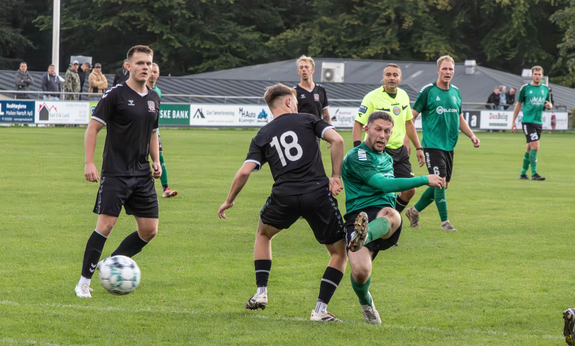 Både Kris Larsen og Jakob Kristensen, holdets to angribere, gav smagsprøver på deres kunnen og satte flere gange Varde-forsvaret på store prøver, men scoringer blev det dog ikke til for hjemmeholdet, der måtte gå til pause bagud 0-1.