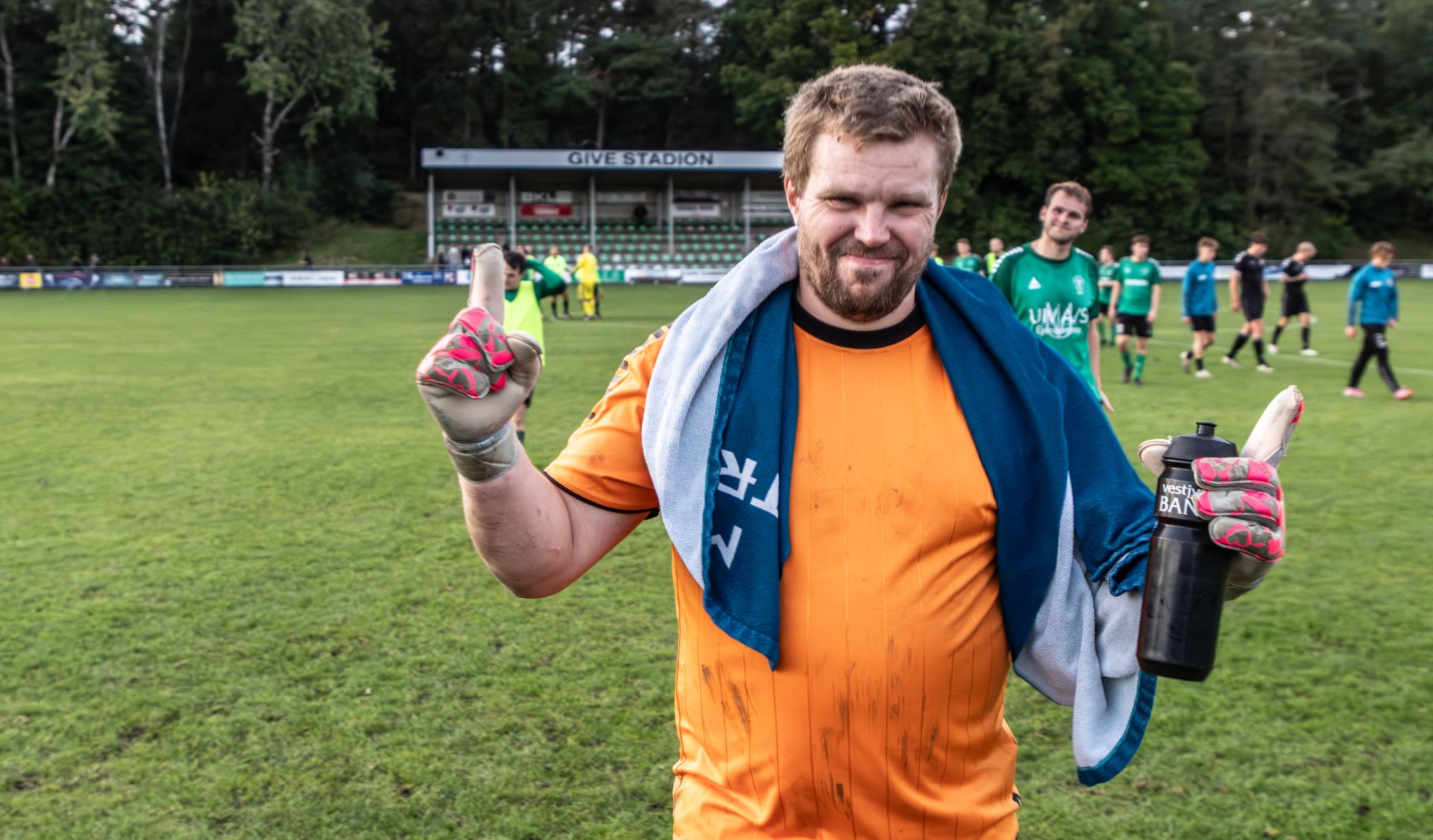 Give-keeper Jan D. Rasmussen kunne fejre sin kamp nr. 300 for Give - og det endda med en 2-1 sejr! Foto: Jim Hoff