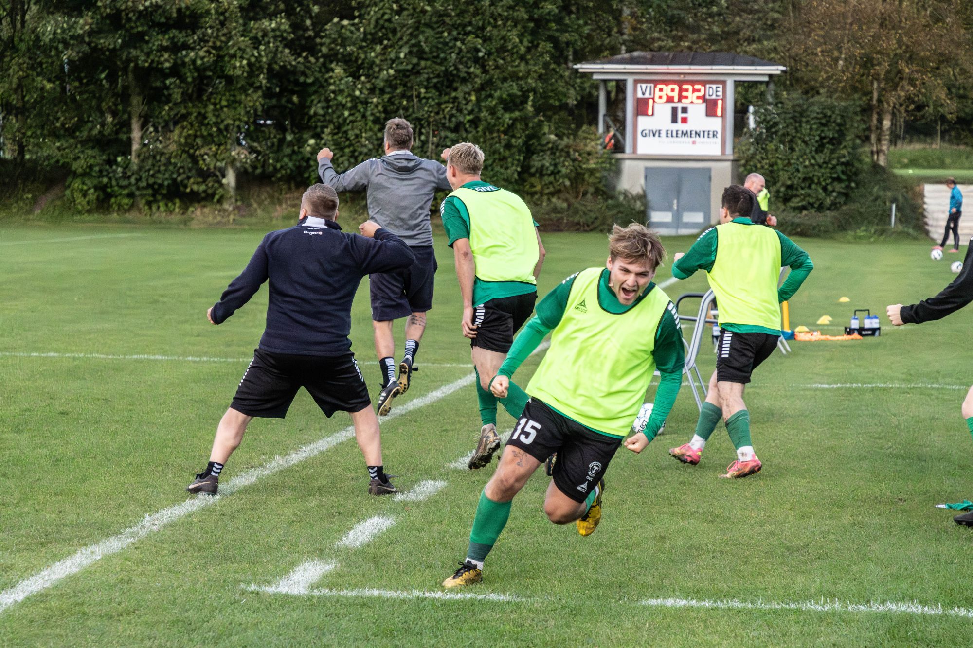 Jubel på Gives sidelinje, da Jakob Kristensen piskede kuglen i kassen til 2-1. Foto: Jim Joff