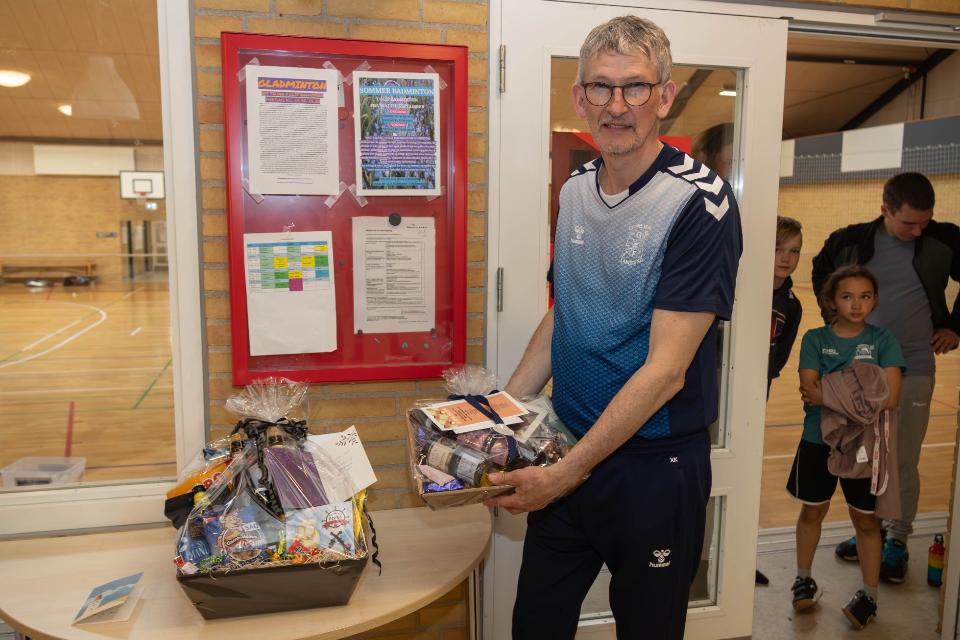 Herefter fik Ib en gave fra klubben: En badmintontrøje med påskriften “Fire årtier, tusindvis af slag, en passion”. Derudover var der gavekurve både fra spillerne og klubben, ligesom den populære badminton-ildsjæl også fik en masse hjertefølte krammere af spillerne. Han er bare om nogen spillernes mand - både de helt små i 6-8 årsalderen og op til de unge kække teenagere!