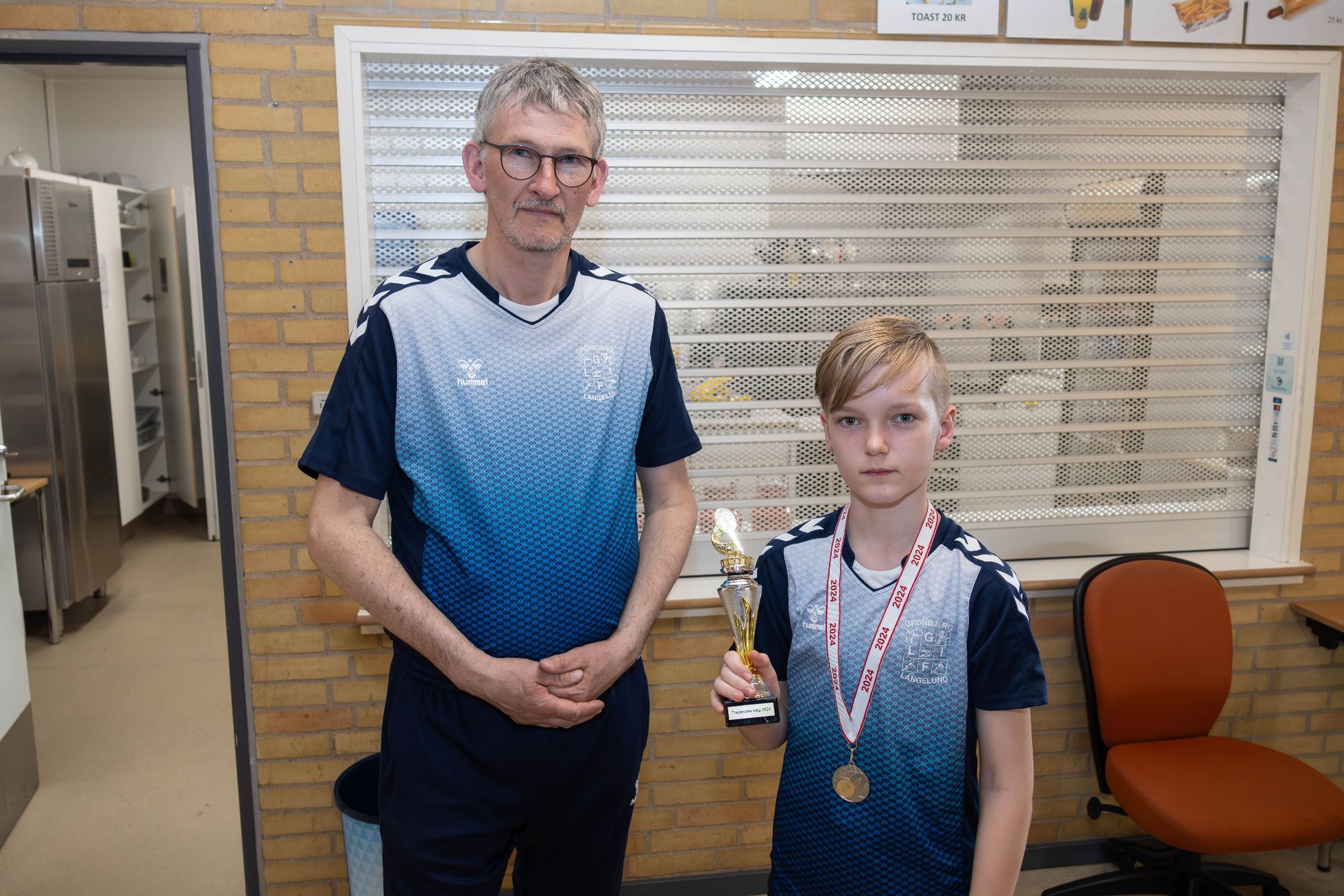 I forbindelse med klubmesterskaberne i GLIF Badminton var Ib med til at overrække medaljer og pokaler til spillerne. Her er det Nikolaj, der aftrænerner bliver kåret til "Bedste Kammerat". Foto: Jim Hoff