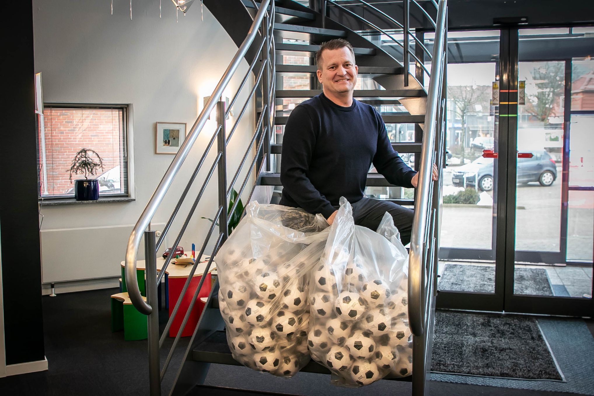 Lars Bodholdt vil igen kaste en masse skumhåndbolde ud til publikum i forbindelse med 2. divisionskampen mellem Give HK og Kolding IF. Foto: Jim Hoff